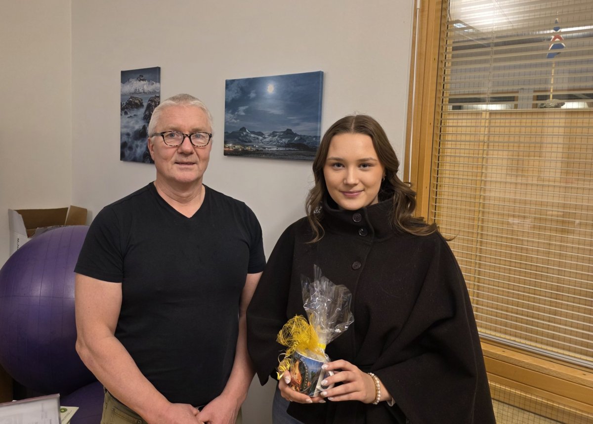 Karítas Mekkin Jónasdóttir verðandi nýstúdent um jól fékk í dag afhent Múmínkönnuna en það eru verðlaun fyrir framlag til félagsmála í nemendaráði Menntaskólans á Egilsstöðum. Karítas var formaður ritnefndar ME síðasta skólaár og stóð sig þar af mikilli prýði. Það er mjög dýrmætt fyrir skólann að hafa öflugt fólk í nemendaráði skólans hverju sinni og við óskum henni til hamingju..